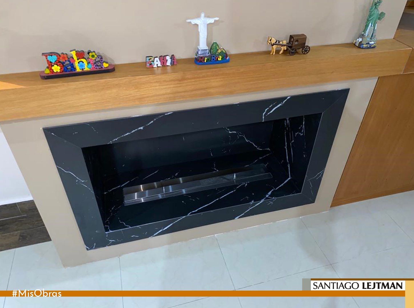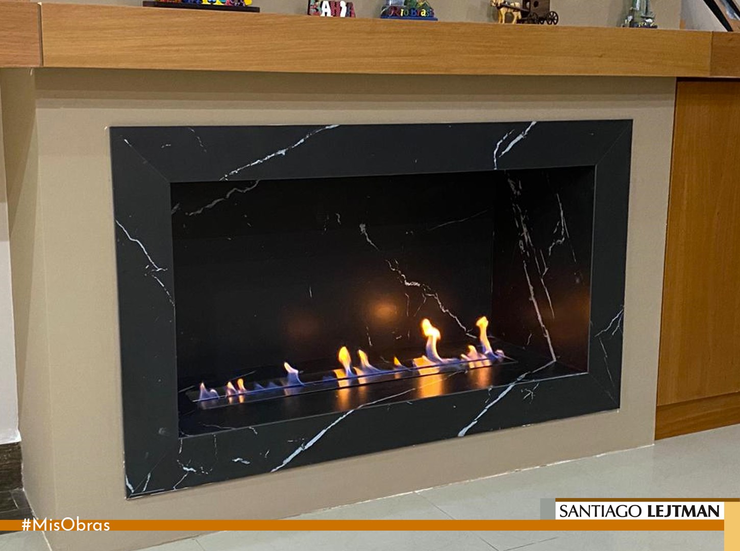 Revestimiento del hogar: neolith, negro marquina.