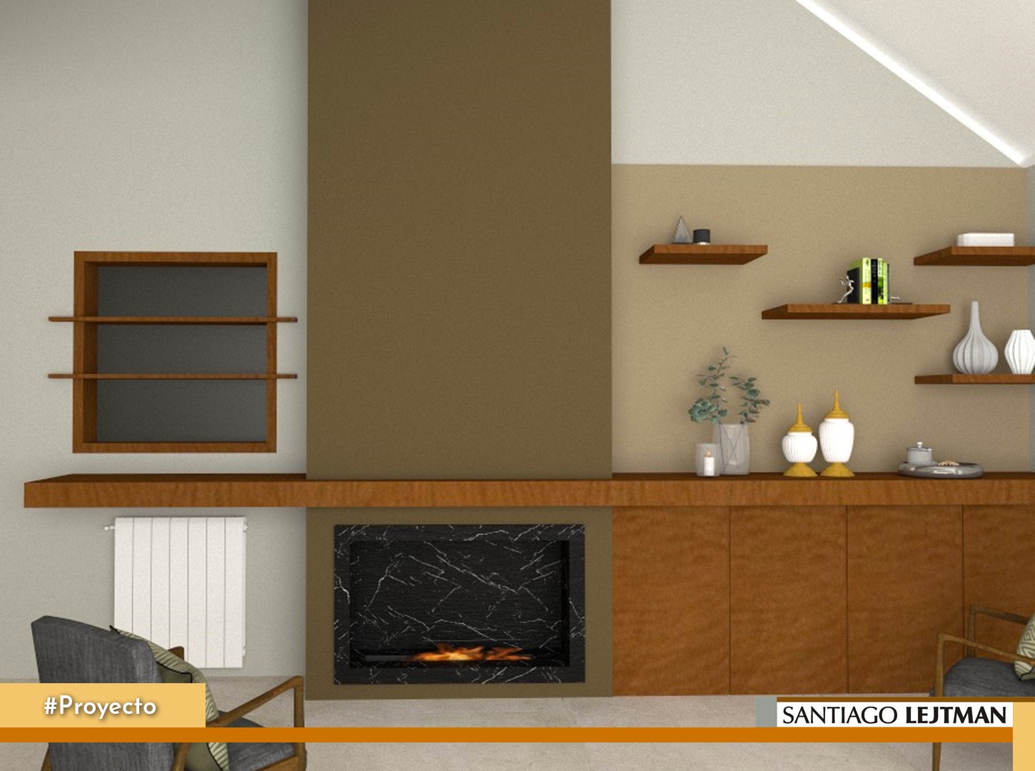 Interiorismo en Living. Los hogares de bioetanol son una muy buena opción si lo que queremos es obtener calor y, a la vez, una solución estética.