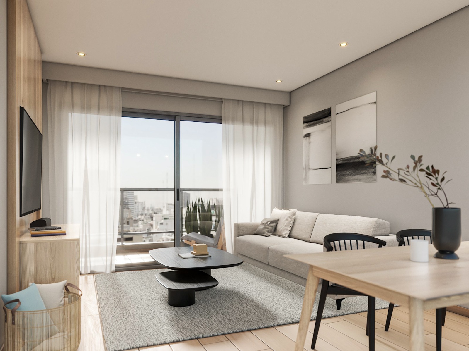 Grandes aberturas de pared a pared, permiten espacios iluminados y ventilados, que, junto a amplios balcones y terrazas, determinan el horizonte de las viviendas.