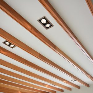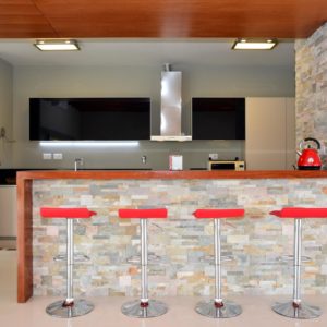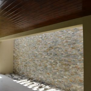 Toda la obra fue revocada y revestida con revestimientos plásticas, excepto sendos paños de piedras: en un lateral de la galería y enmarcando una barra de madera maciza de incienso de 2 pulgadas.