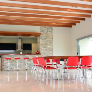 Se intento establecer una relación de controlada transparencia entre el interior y el exterior del espacio principal con una acentuada horizontalidad vidriada.